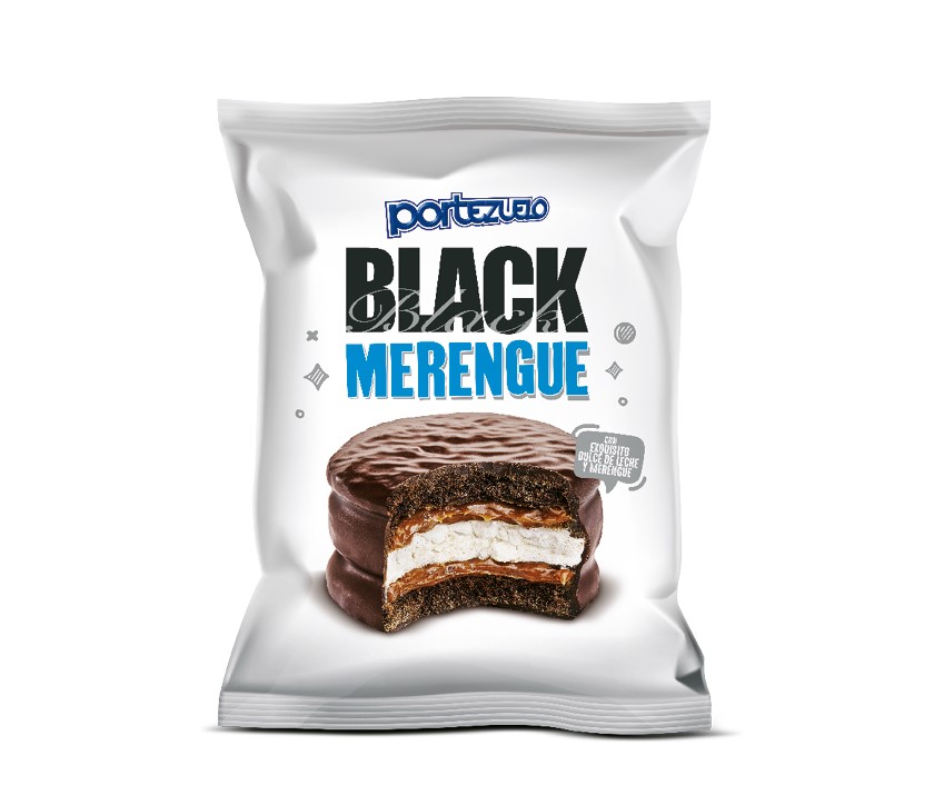 Alfajor triple con galletas black relleno con dulce de leche, centro de merengue y cobertura sabor chocolate